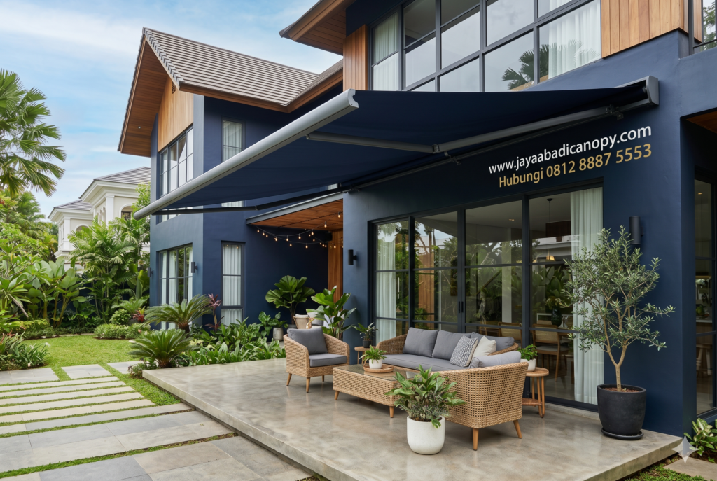 Untuk ukuran kecil dan jenis manual, beberapa produk sudah dilengkapi panduan pemasangan mandiri yang cukup mudah diikuti. Pastikan bracket dipasang pada struktur dinding yang kuat agar awning tidak mudah lepas.