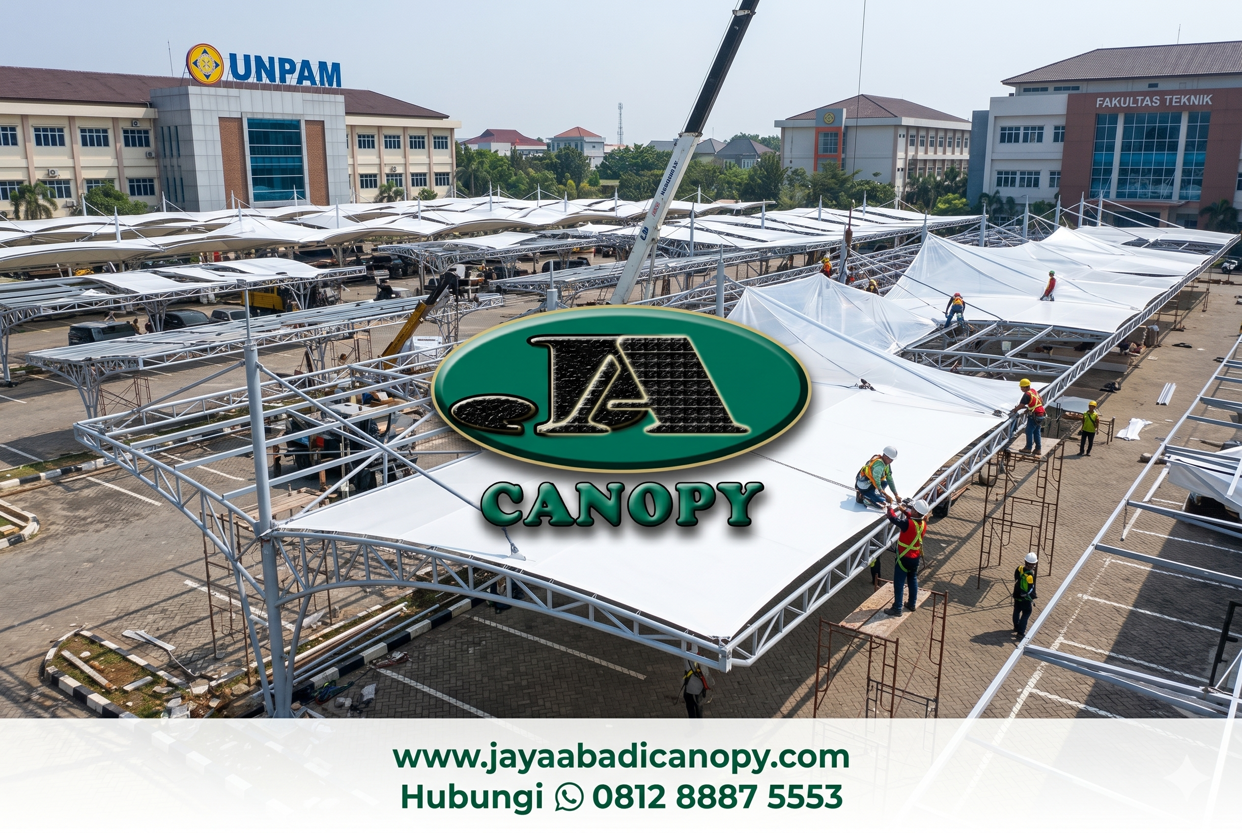 Struktur utamanya menggunakan pipa besi atau baja yang kokoh sebagai penyangga, kemudian kain membrane ditarik sedemikian rupa hingga membentuk permukaan yang kencang dan indah. Inilah alasan mengapa canopy membrane sering disebut sebagai perpaduan antara seni arsitektur dan teknologi konstruksi.