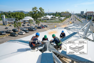 Salah satu ciri khas yang paling menonjol dari membrane adalah bentuknya yang sangat fleksibel. Karena sifat materialnya yang berupa lembaran kain teknis, Anda bisa membentuknya menjadi pola-pola yang unik, mulai dari bentuk payung, gelombang, hingga desain futuristik lainnya.
